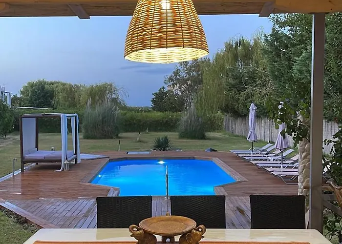Ξύλινο γεφύρι Λευκάδα βρίσκεται πολύ κοντά στη βίλα.